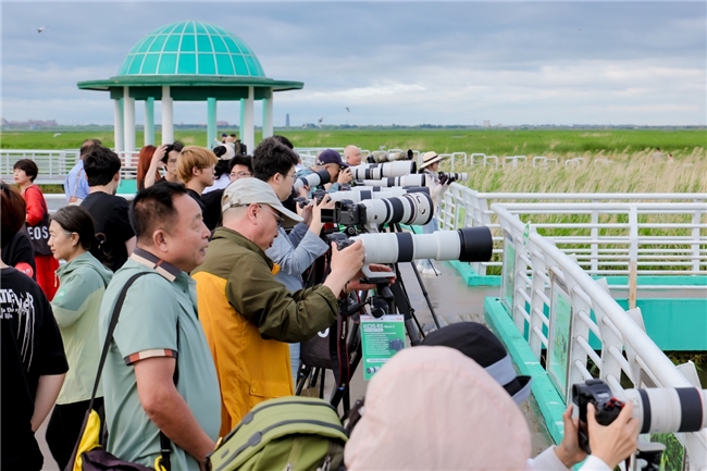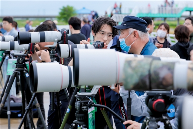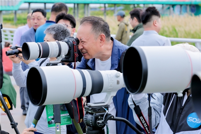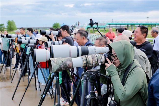 大庆市龙凤湿地岸边“长枪短炮”林立,形成一道独特的风景线。佳能专微相机与RF长焦镜头在阳光下泛着微光,与葱郁的湿地环境相映成趣,现场只听见此起彼伏的快门声与清脆的鸟鸣交织回响。